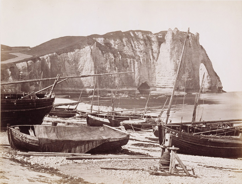 Le sel de la mer imprime le papier photographique des amateurs, aristocrates ou bourgeois fortunés en villégiature. Alphonse Davanne s’impose dans le domaine grâce à sa virtuosité technique, puis c’est au tour d’une reproduction plus mécanique de faire voyager sous la forme de cartes postales les falaises d’Étretat.